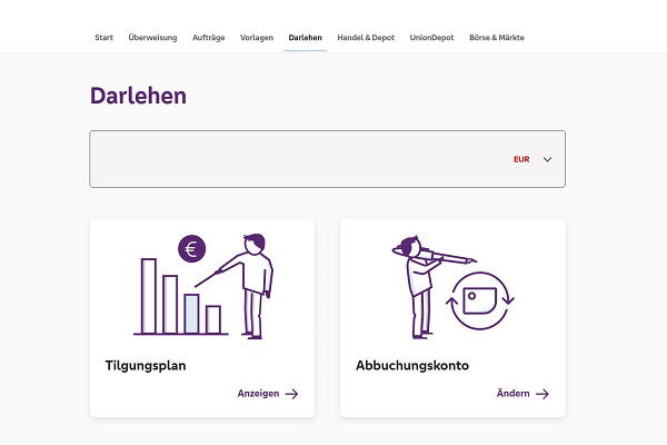 Im Bereich „Darlehen“ haben Sie die Möglichkeit, das Abbuchungskonto für Ihr Darlehen flexibel zu ändern. Dies ermöglicht Ihnen, Ihre finanziellen Verpflichtungen nach Ihren individuellen Wünschen und Bedürfnissen anzupassen. Um diese Änderung vorzunehmen, navigieren Sie einfach zu dem entsprechenden Abschnitt und folgen Sie den Anweisungen, um das gewünschte Konto auszuwählen.